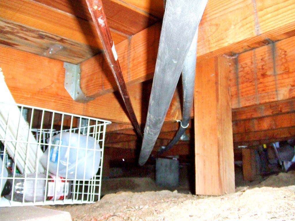 A cold water pipe, an insulated hot water pipe, a solar electric conduit under the deck and shed
