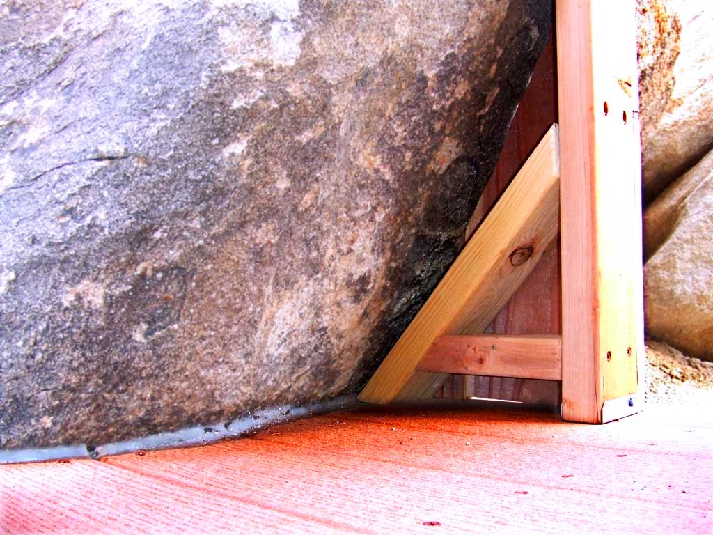 Silicone fills the gap between the Veranda composite decking and the boulder