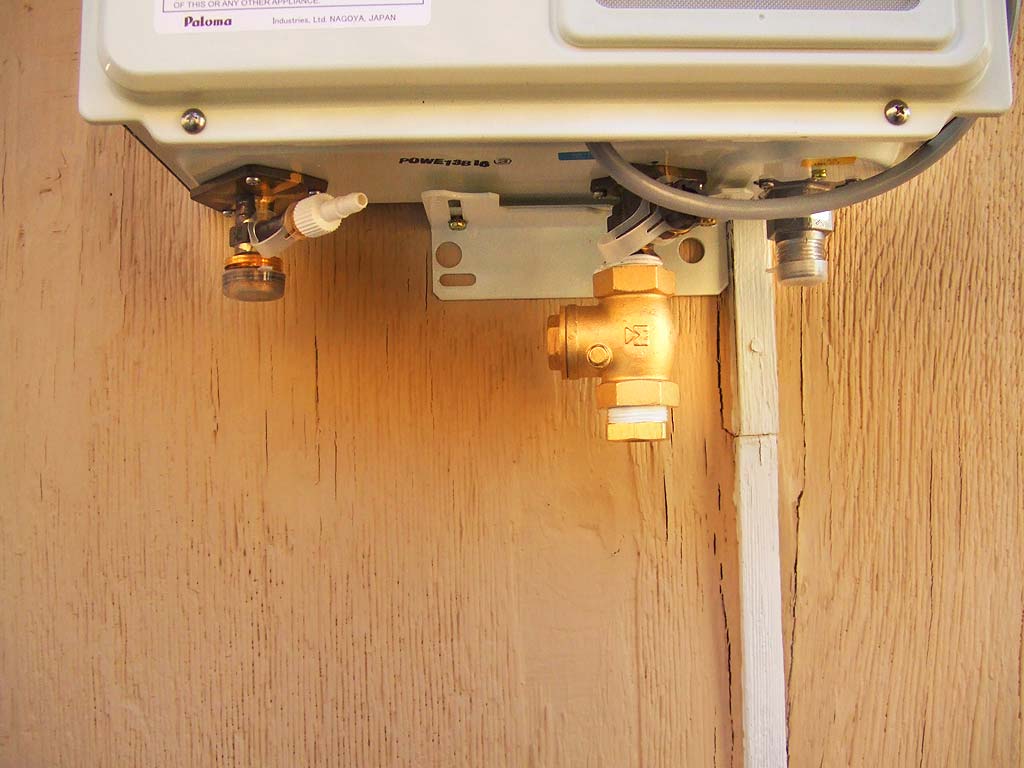 The Rheem '4.2 GPM tankless water heater LP propane gas'