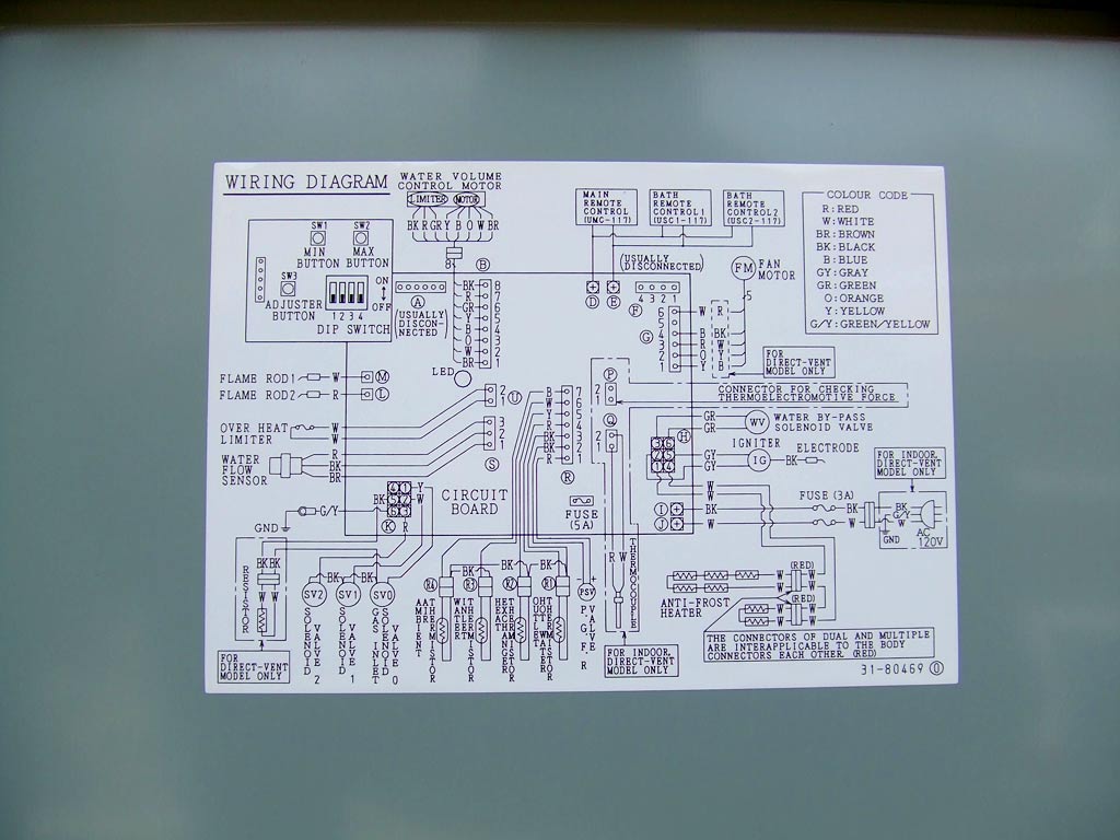 The Rheem 4.2 GPM 'indoor' tankless water heater direct-vent diagram