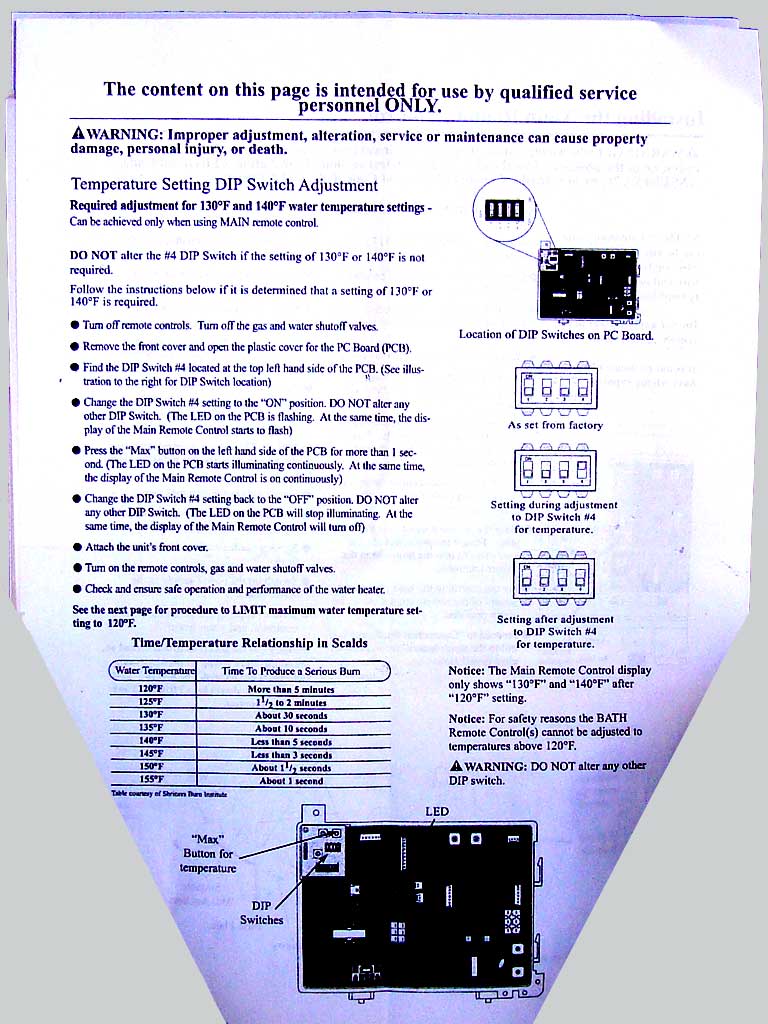 The Rheem 4.2 GPM tankless water heater temperature raising directions