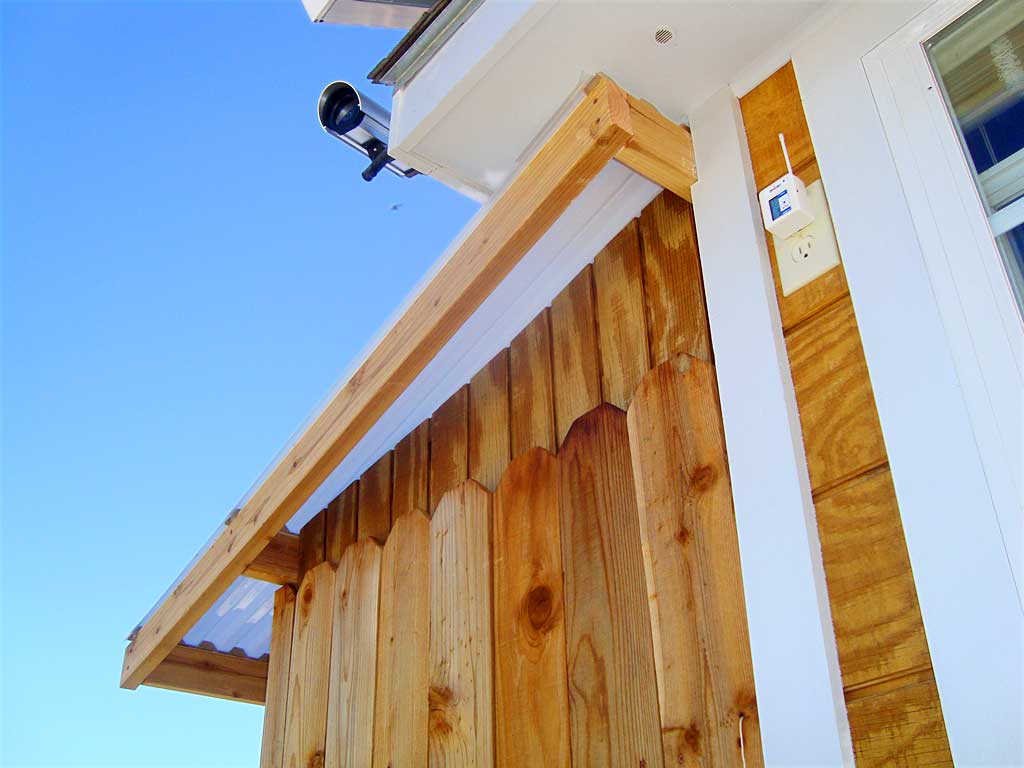 Inserting T1-11 side panels at each end of the outdoor shower stall
