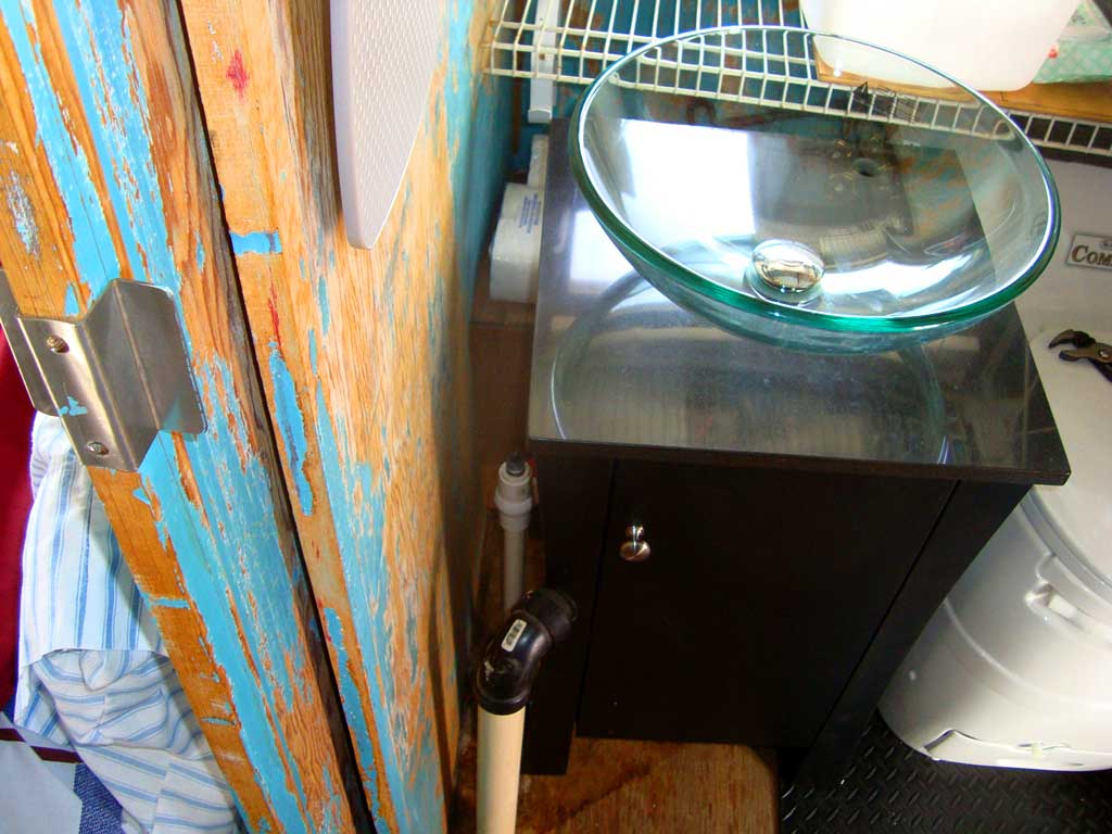 Home Depot's Pegasus granite top vanity and glass vessel sink with drain kit