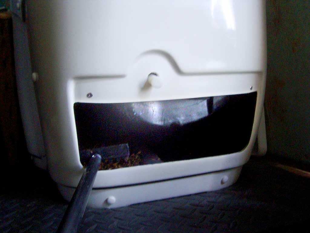 The Sun-Mar compact compost toilet drawer opening (it will never be this clean again)