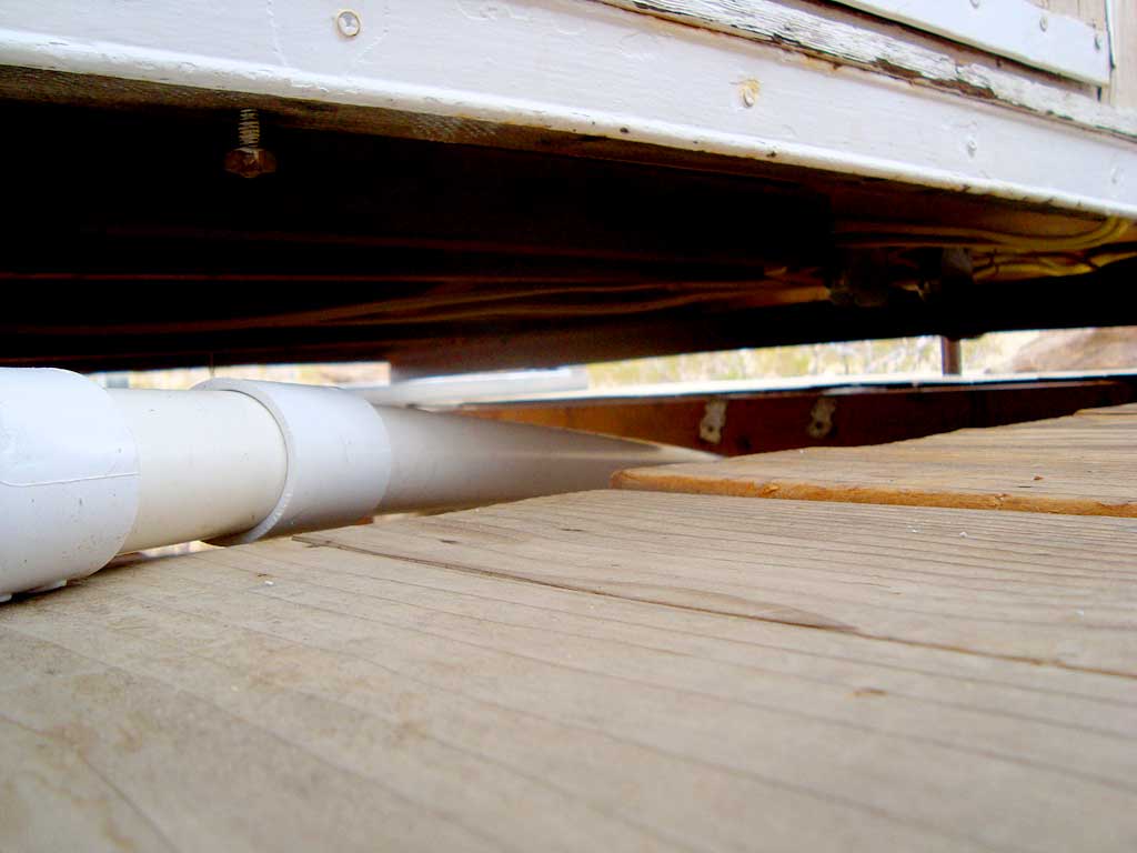 A PVC pipe to drain the washing machine