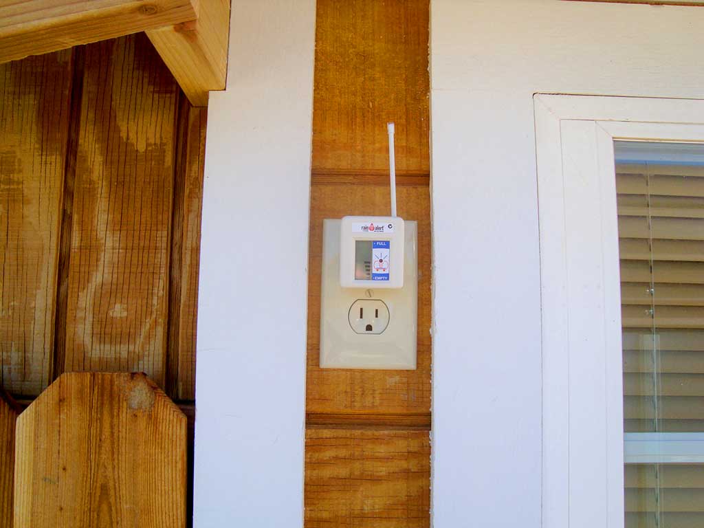 The Rain Alert tank level receiver is monitoring the water level in the tank up in the hill nearby