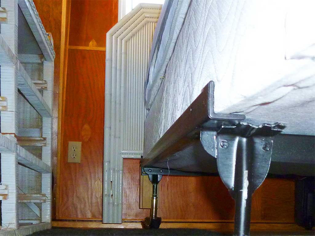 The queen headboard is attached to the double bed frame with the 3rd leg