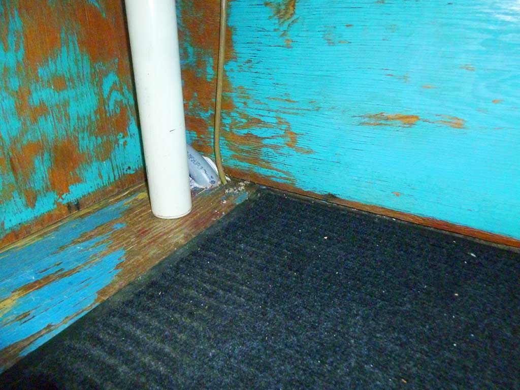 The cord to a Logitech Alert 700i web cam and the compost toilet overflow drain