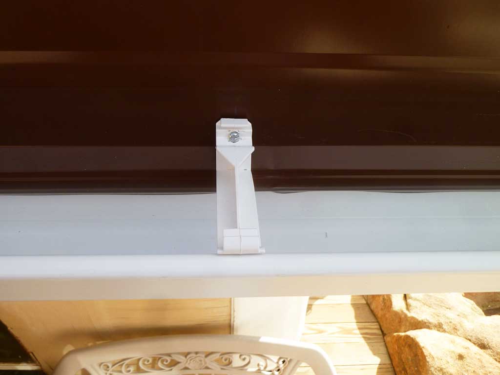 Attaching an Amerimax vinyl 'hidden' hook between the steel posts of a Carolina carport
