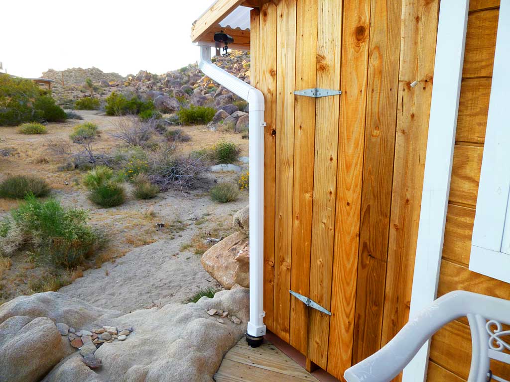 The Amerimax vinyl downspout flow is piped to the grey pond