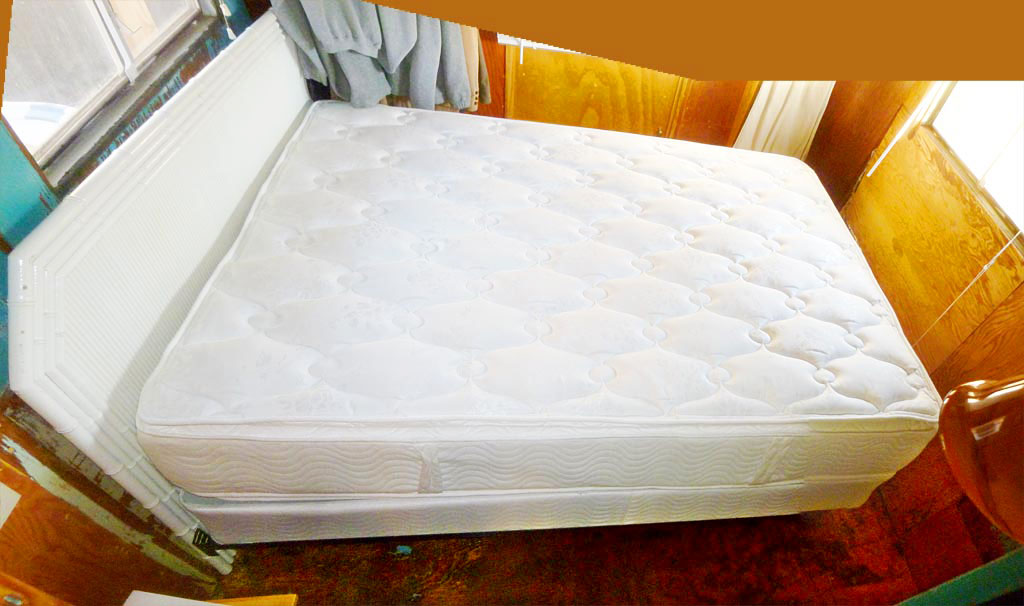 A pillow-top bed purchased at the Angel View Thrift Mart in Yucca Valley, CA