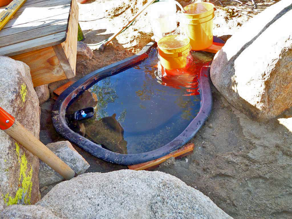 Water weighs down the pond liner while pushing dirt below to make a solid bed