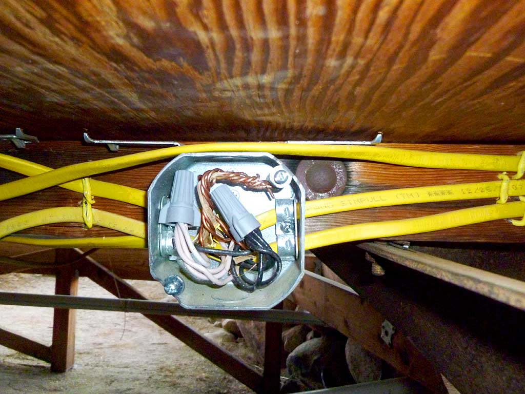 Tying the new electrical box on the outside wall into the existing circuitry under the trailer