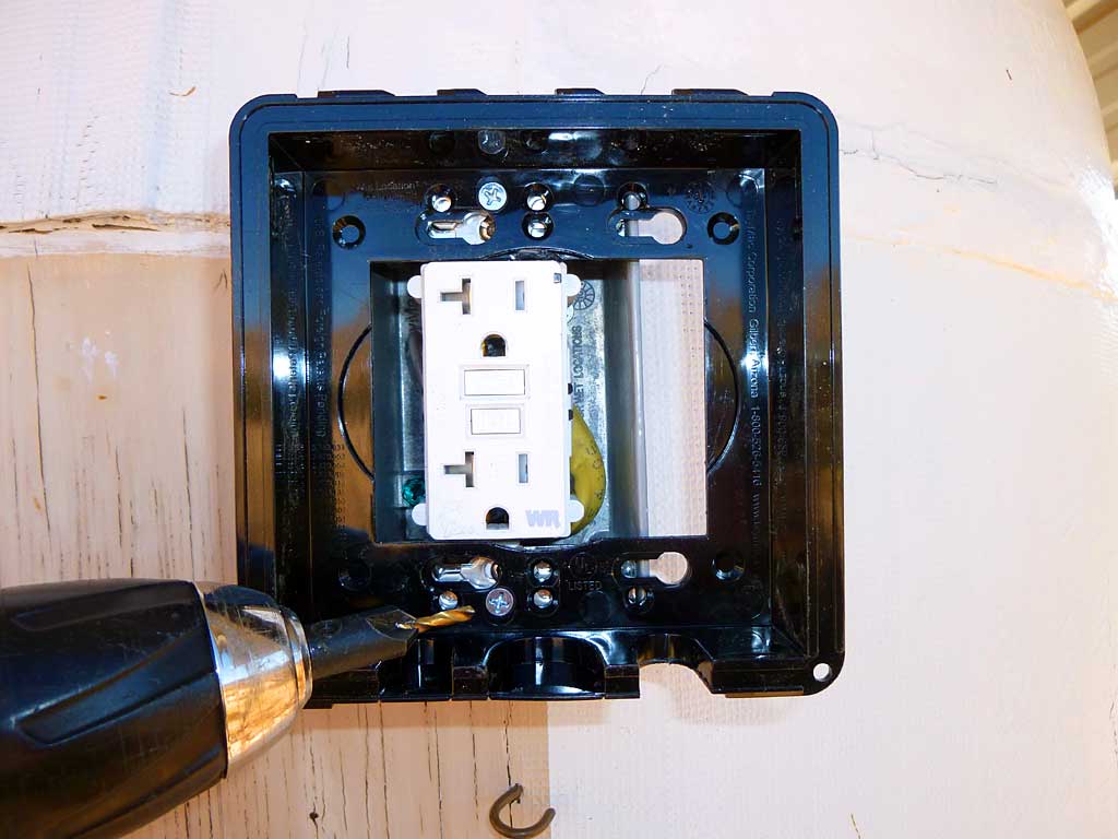 Attaching an outlet and an outlet enclosure to the new electrical box