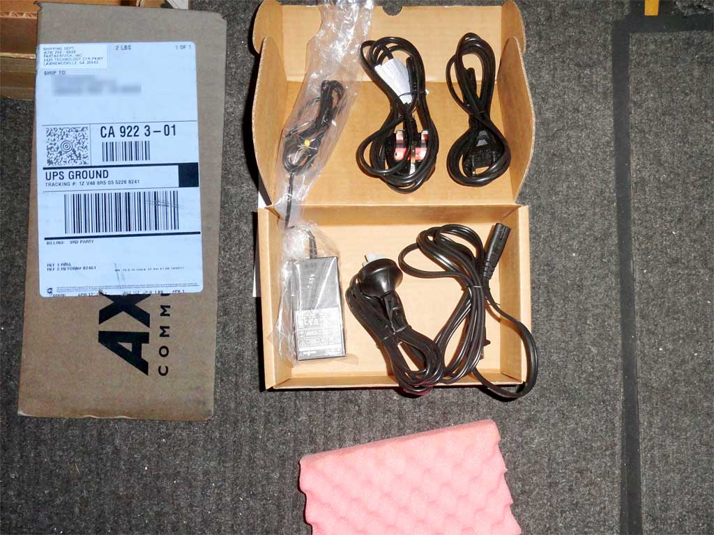 Unpackig the power supply to an Axis 214 PTZ network camera