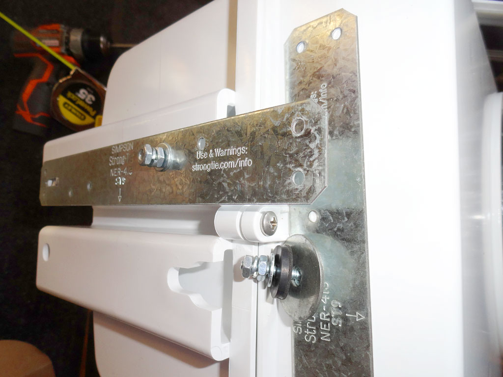 Steel straps, bolts and fender washers will attach the heavy IP cam dome and camera to a narrow 2x4 frame