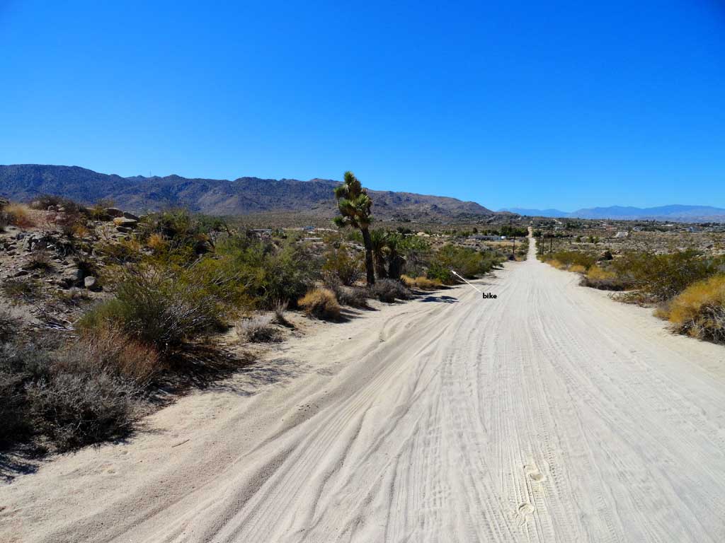 2011: I hid my brand new broken bike behind these bushes as I set out on foot on this Joshua Tree, CA back Road