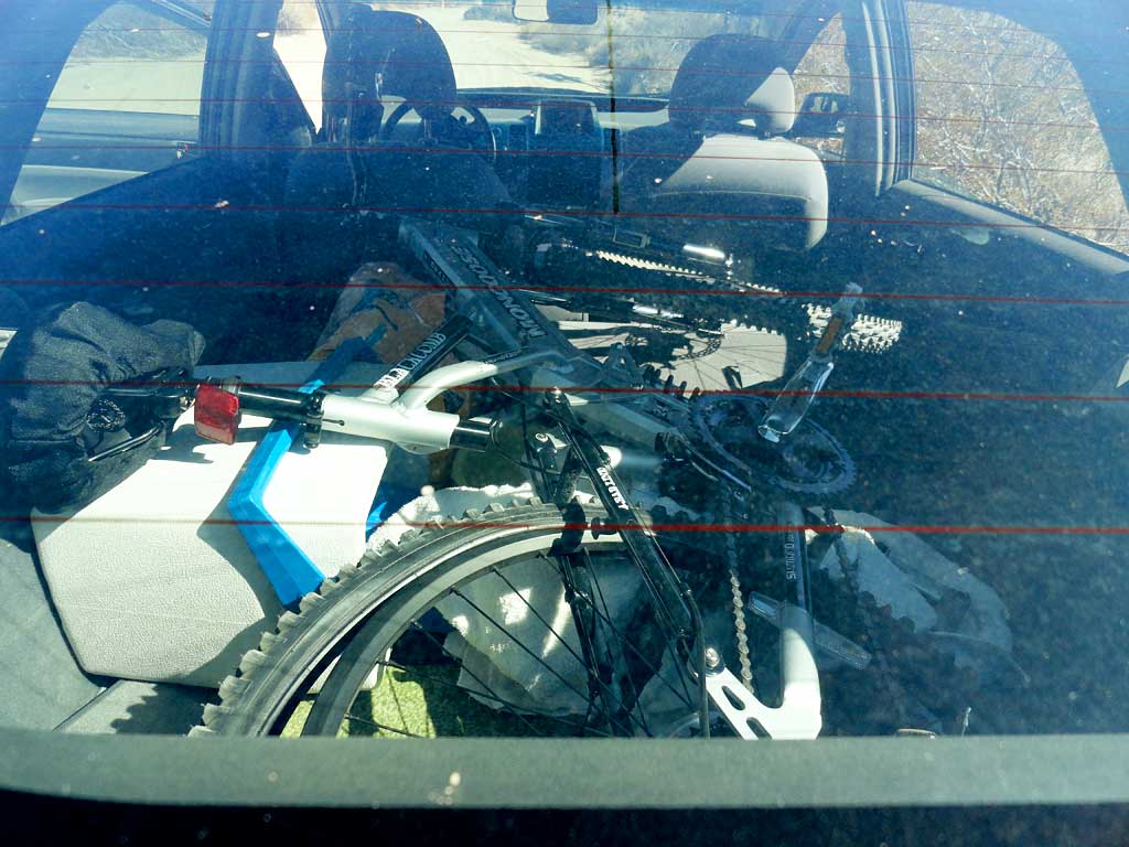 2011: Recovering my broken Mongoose Blackcomb dual-suspension mountain bike hidden behind some back-country bushes