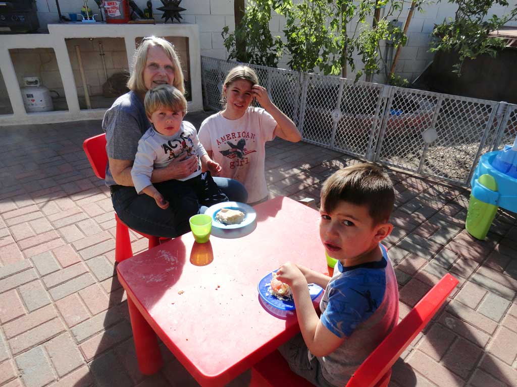 Eileen Blakeman having lunch with the kids at Jody & Tiffany Kerr's home in Tempe, Arizona