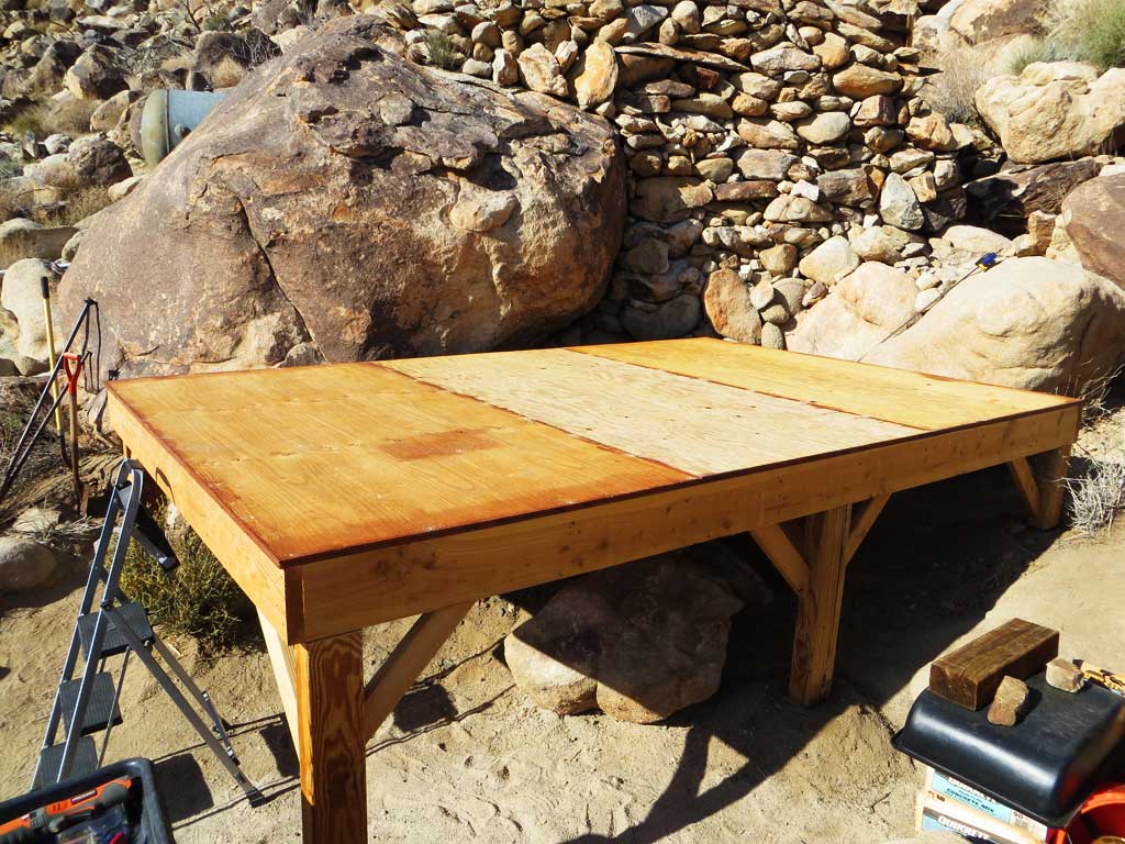 Plywood decking is attached to our shed platform frame -