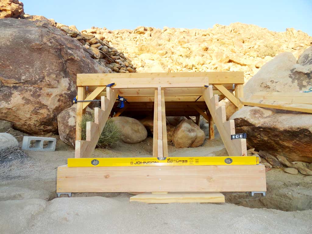 Fitting step stringer frame to the shed platform frame -