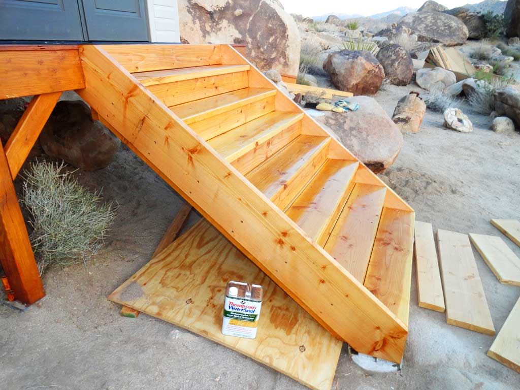 Preserving the new shed platform steps with Thompsons Clear Waterseal -