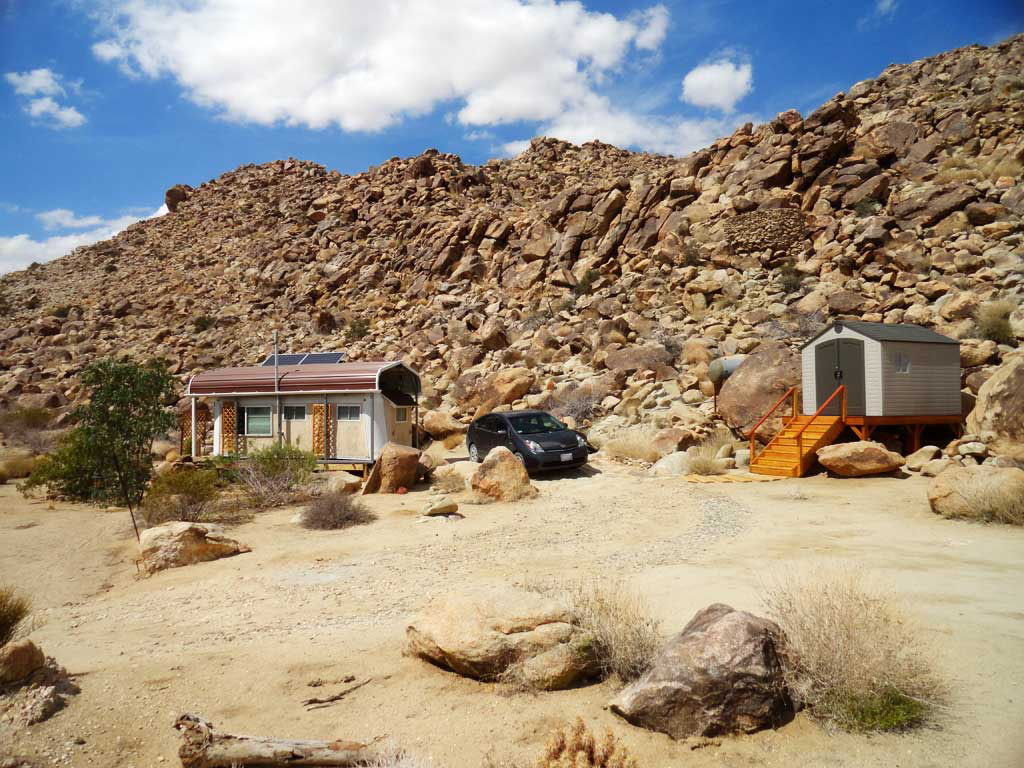 A Carolina carport over my antique Branstrator trailer on a rack, and the new Lifetime shed on a platform - all on concrete piers