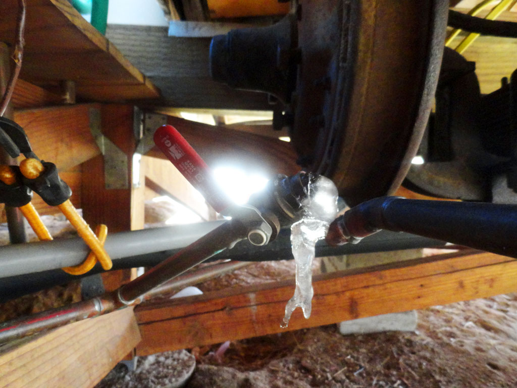 Ice has pushed a poorly soldered shutoff valve off of its pipe