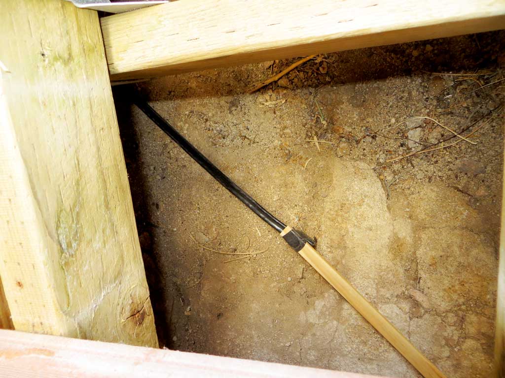 Pulling a heat tape along a pipe under the deck with a very long strip of molding and tape