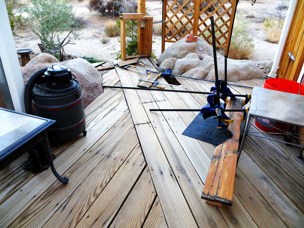 Gluing a broken redwood deck board