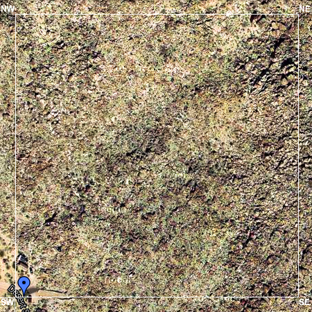 A satellite view of our 10 Acres. Below the top right corner you can see the tops of the two giant boulders pictured elsewhere