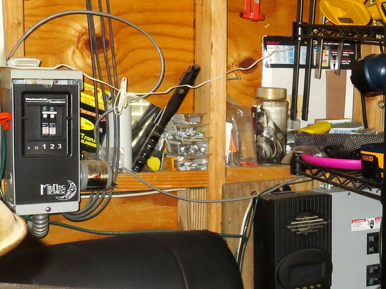 Removed the solar combiner box lid to keep an eye on the breakers