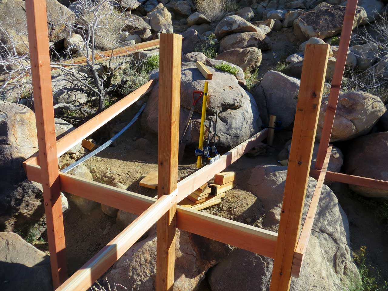 Laying a frame for a hillside deck