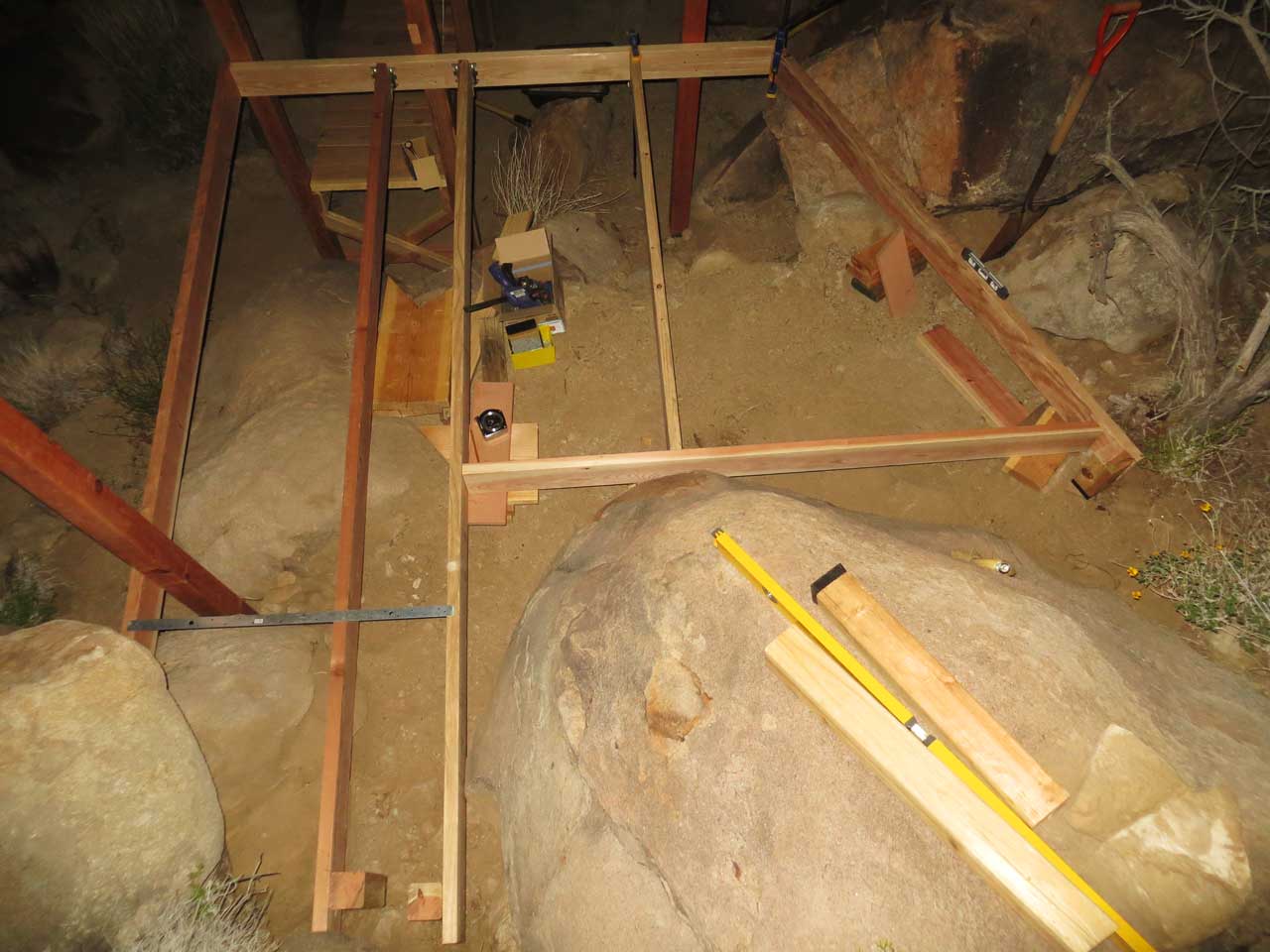 Laying a frame for a hillside deck