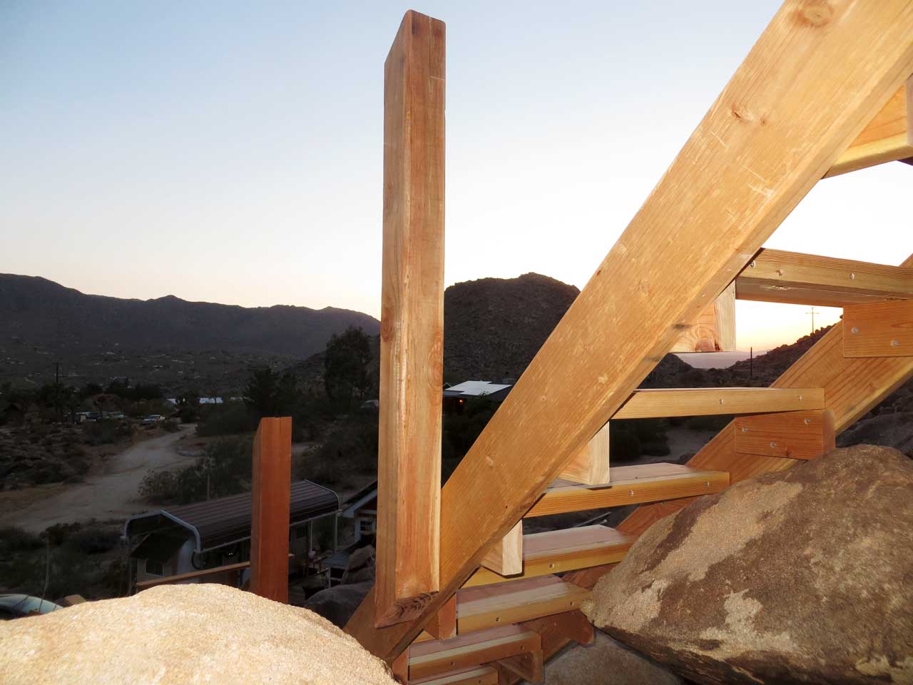 Attaching a center railing post to this hillside staircase