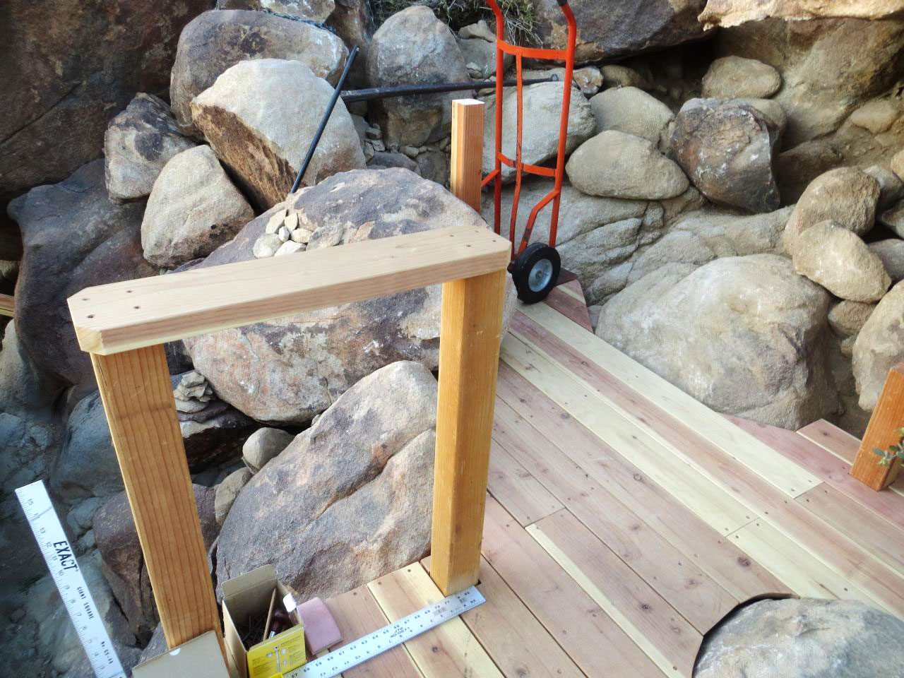 Moving hillside rocks with a hand truck