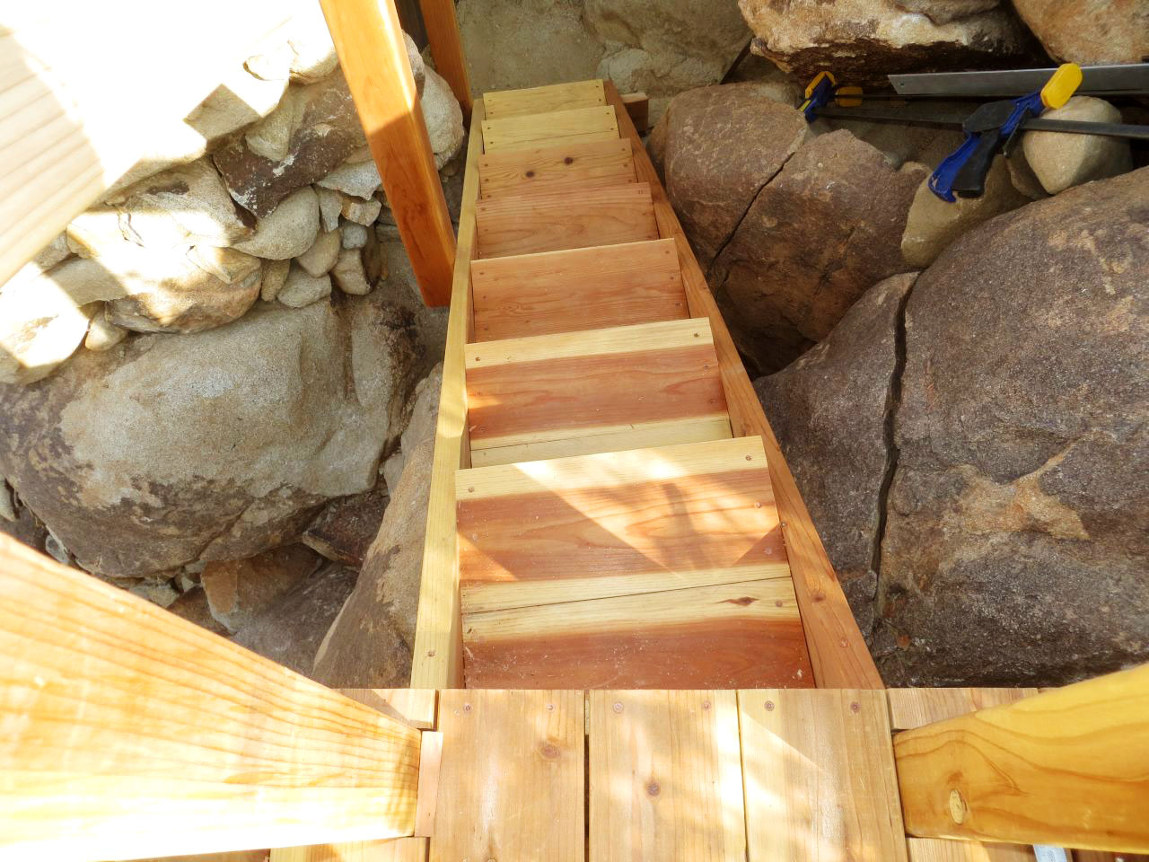 The stairway from the hillside deck to the water tank