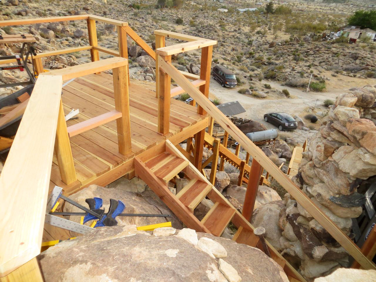 A hillside deck and its stairways