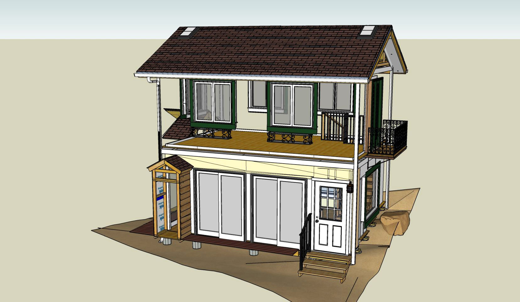 SketchUp two story addition model with gutter and terrain, walls hidden