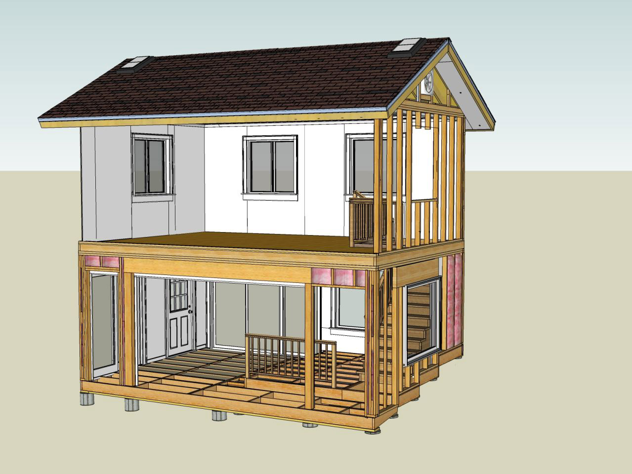 SketchUp two story addition model, south walls & floor etc hidden