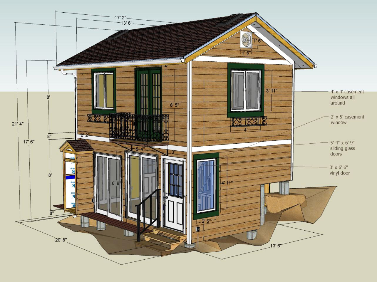 SketchUp two story addition model with dimensions, SE corner