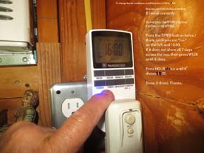 | The following was added nearly a year later from 3000 miles away to show a neighbor how to adjust this Wasserstein timer. Fortunately, these pictures had been taken before my departure two weeks prior.