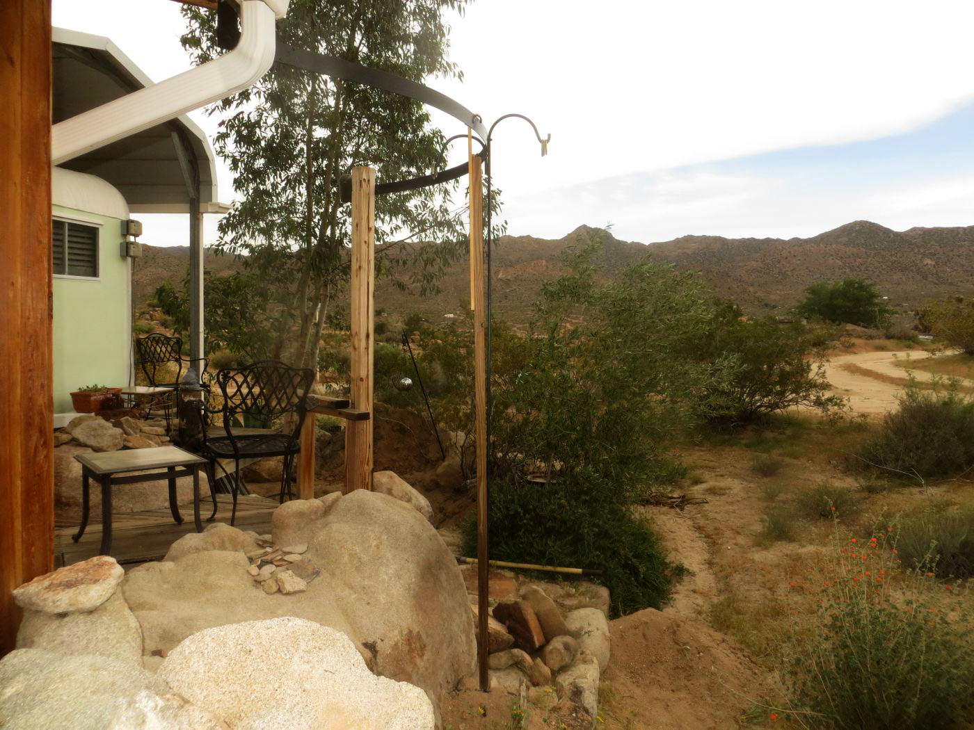 The steel post and trellis are vertical