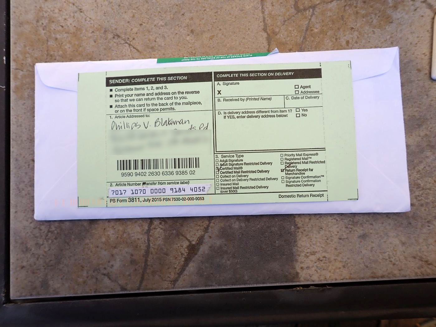 Mysterious and threatening registered letter