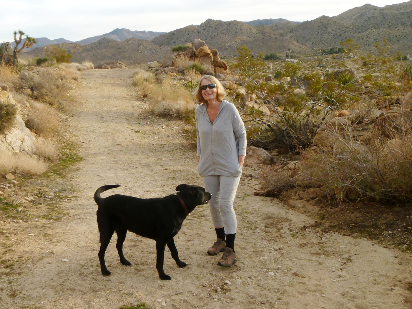 Molly and Eileen Blakeman taking a walk on our road south of Joshua Tree, CA