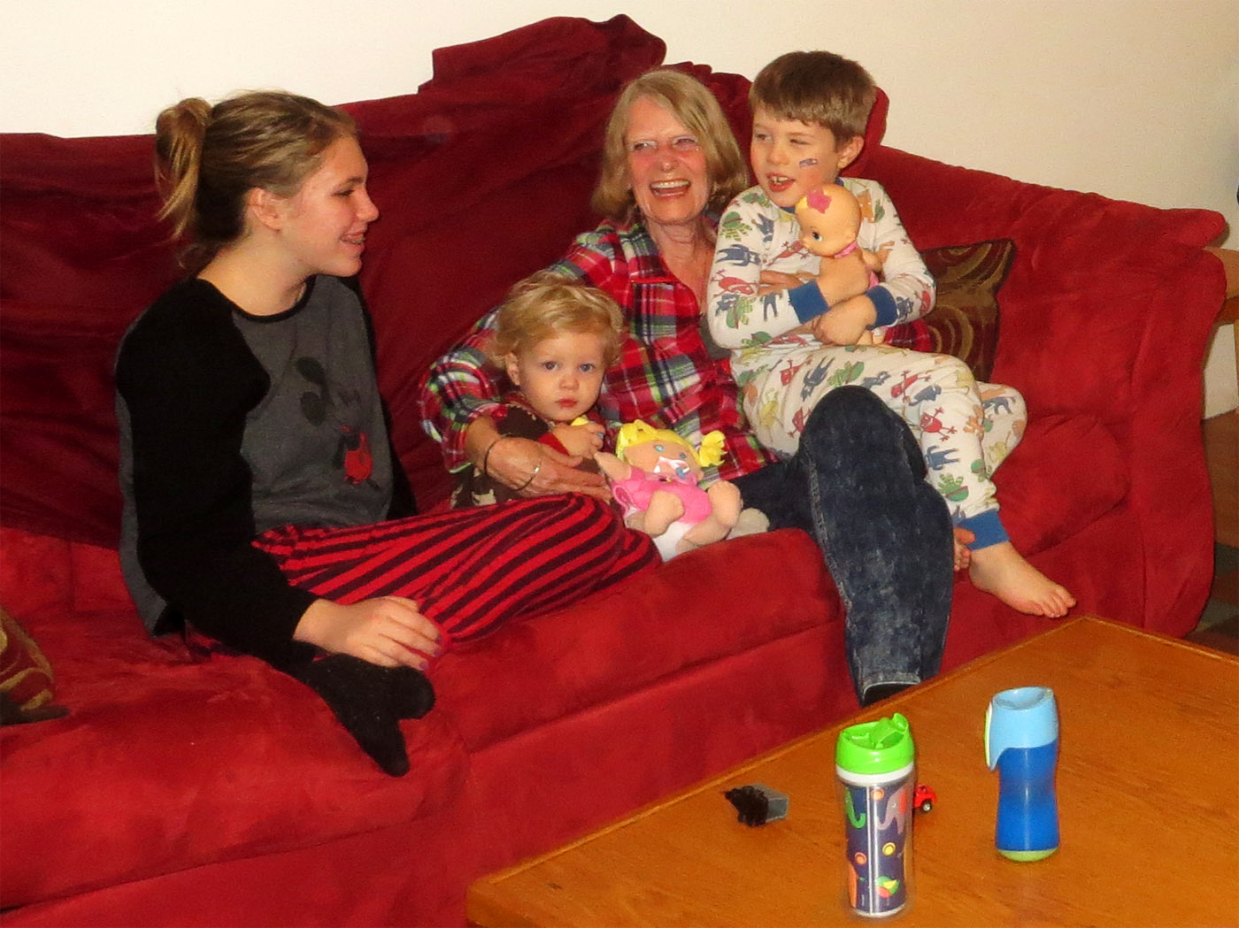 Eileen Blakeman with her grandkids Tanith Barnhill, Ellie and Jensen Kerr in 2015