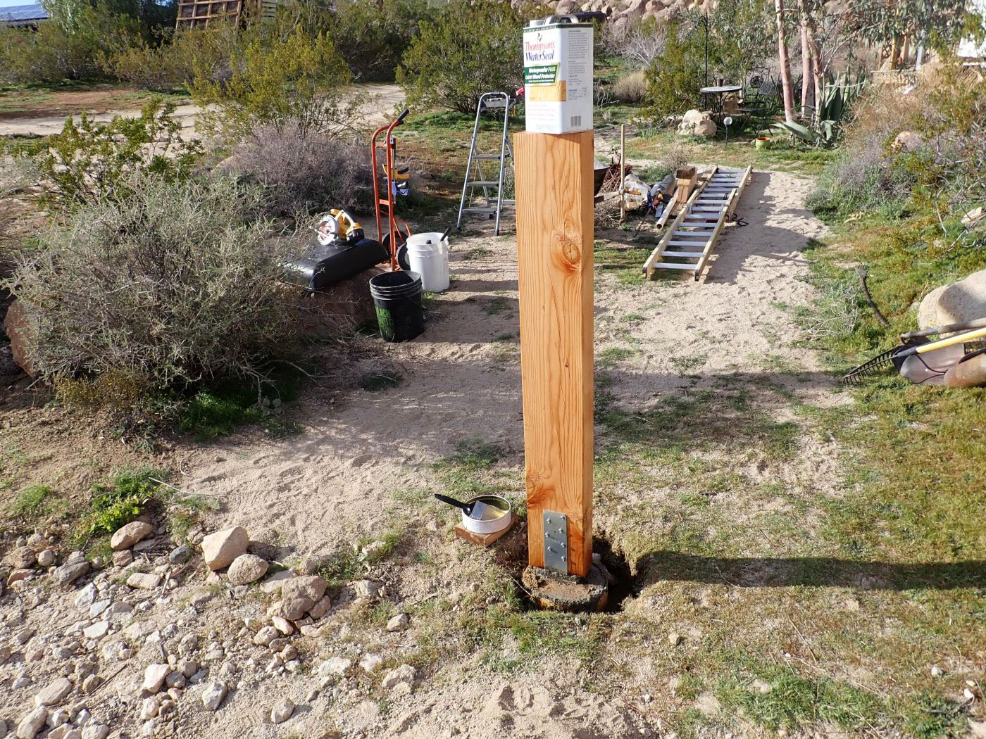 Coating the third gate post with Thompsons Waterseal