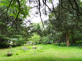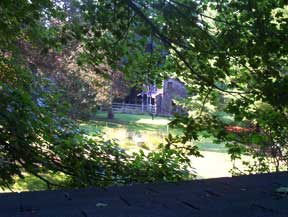 A high view of the yard and an old chicken house