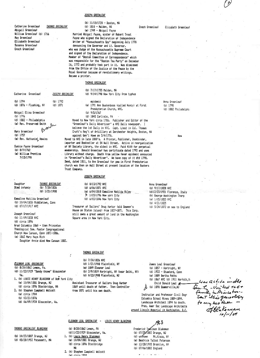 Compiled by Donald Greenleaf and Jill Blakeman in 1990.