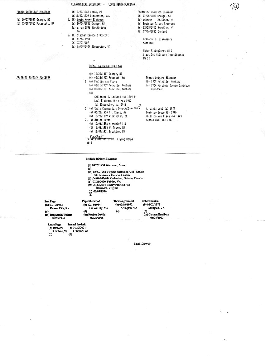 Compiled by Donald Greenleaf and Jill Blakeman in 1990. The family of Jill and Fred Blakeman were added on this page by Fred in 2009.